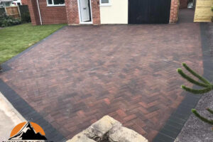 Block paving installations using concrete and clay pavers